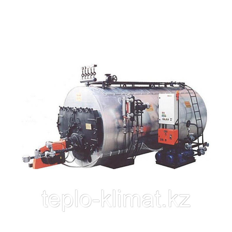 Котел паровой, шотландского типа, на жидком и газообразном топливе – конструктивное исполнение, где поверхности теплопередающих элементов заключены в стальной оболочке. Данные котлы еще называют «жаротрубные» или «дымогарные», поскольку продукты сгорания в таких сооружениях проходят сквозь внутреннюю область пучка стальных труб. Таким образом, тепловая энергия передаётся от нагретых труб окружающей воде. Внутри данных котлов используются различные комбинации трубного размещения, включая разное число проходов. Благодаря технологическим вариациям, достигается нужный тепловой эффект от топлива, сжигаемого в печи котла.